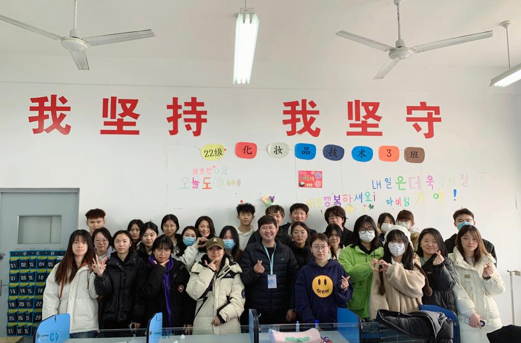 化妆品技术专业(中韩合作)于2021年3月获教育部审批,现有在校生151名,11名员工现在韩国建阳大学交流学习,8名韩方教师到校任教,通过中韩双方的互动交流,希望在未来的专业发展中提供潍职中外合作办学样板。(乔彦霖供稿)