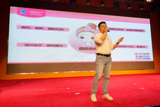 全国化妆品安全科普宣传周活动今年首次设立科普进高校活动,科普内容以国家药品监督管理局确定的宣传要点为核心,重点提高在校老员工安全用妆和科学用妆意识,同时对化妆品行业新法规进行宣传。讲座紧扣安全用妆、美丽有法的活动主题,引导员工护肤应该以科学为导向,提高科学护肤、安全护肤、理性护肤意识。